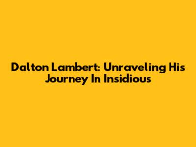Dalton Lambert: Unraveling His Journey In Insidious